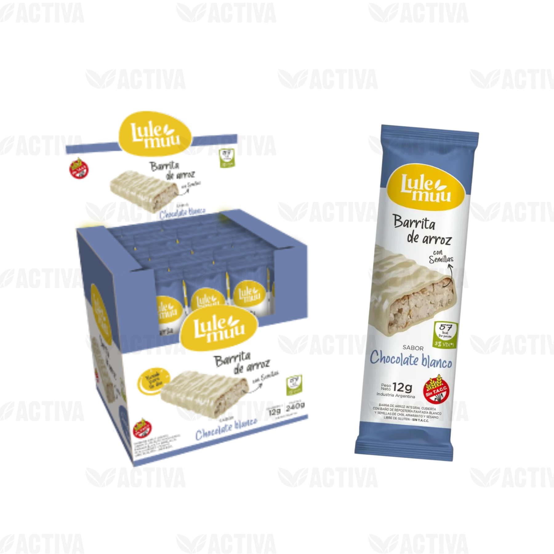 BARRA arroz bañada C/CHOC BLANCO Display x 20 UN -Lulemuu-