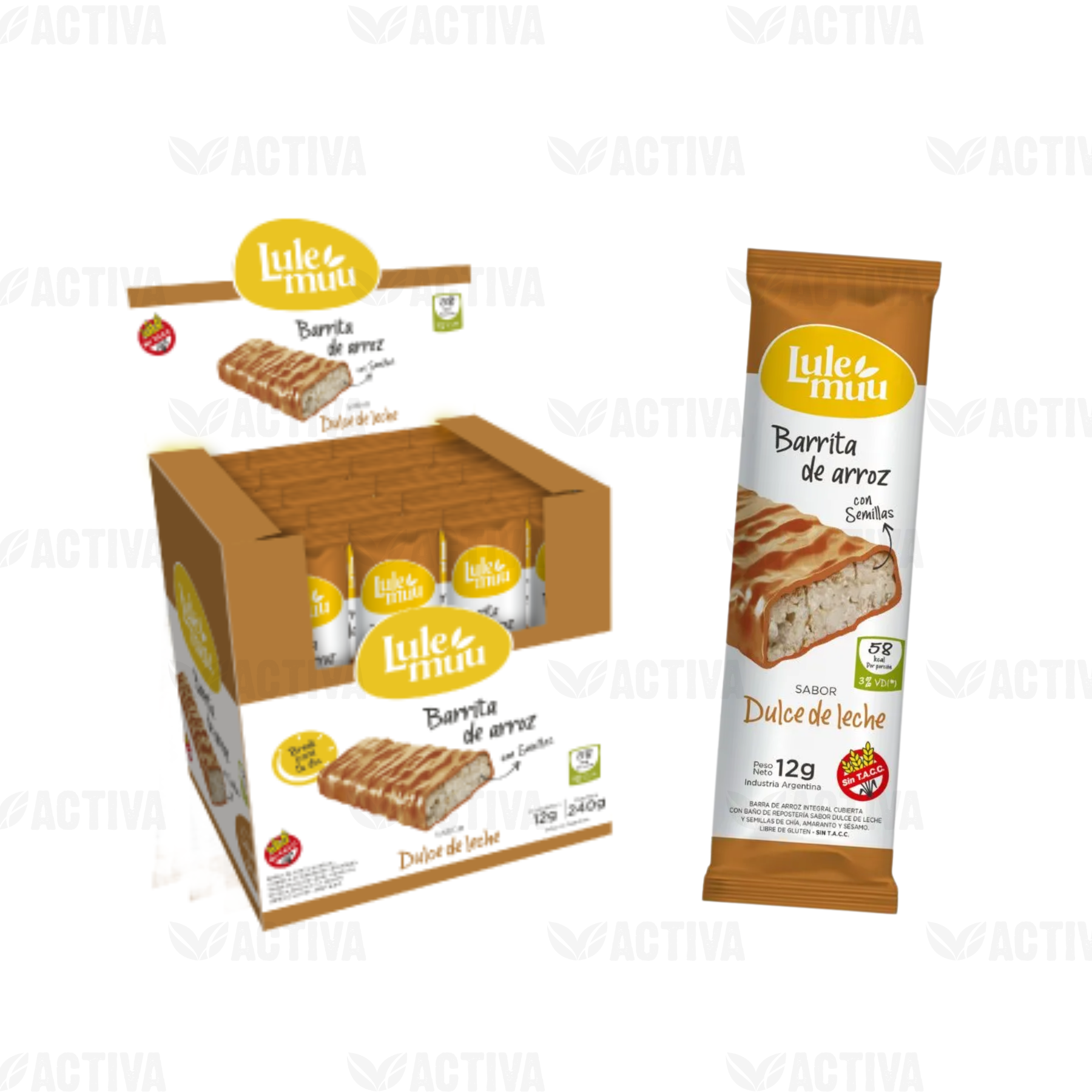 BARRA arroz bañada C/D. DE LECHE Display x 20 UN -Lulemuu-