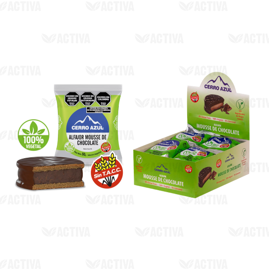 ALFAJOR MOUSSE DE CHOCOLATE (VEGANO) x 12 Un -Cerro Azul-