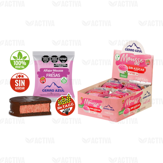 ALFAJOR MOUSSE DE FRESA (VEGANO- SIN AZUCAR) x 12 Un -Cerro Azul-