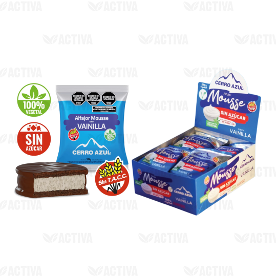 ALFAJOR MOUSSE DE VAINILLA (VEGANO- SIN AZUCAR) x 12 Un -Cerro Azul-