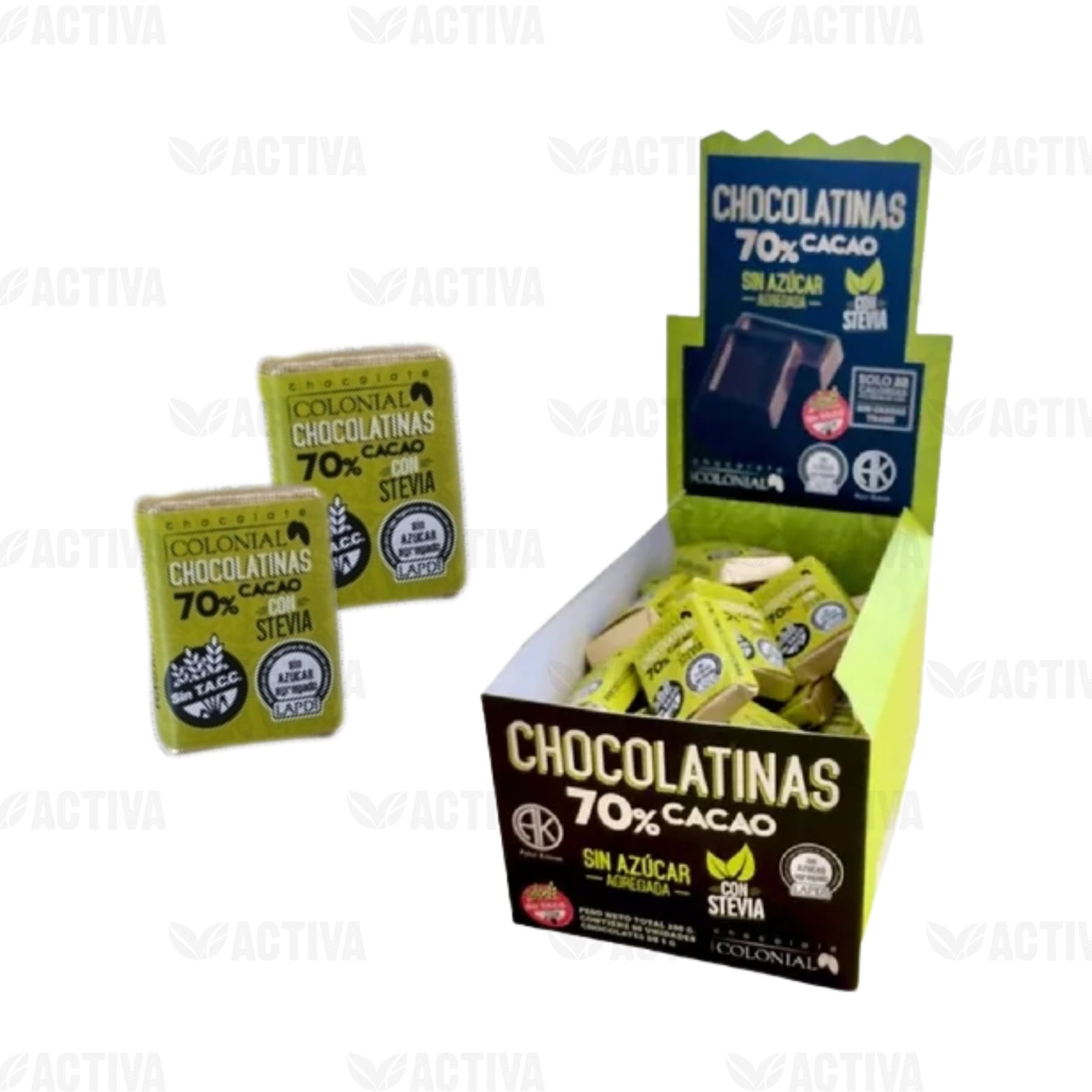 CHOCOLATINAS 70% CACAO SIN AZÚCAR CON STEVIA POR 5 GR. (COLONIAL)